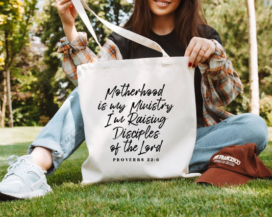 Motherhood Is My Ministry, I'm Raising Disciples Tote Bag