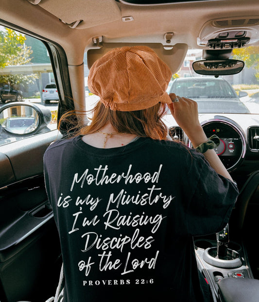 Motherhood Is My Ministry, I'm Raising Disciples T-Shirt(Back Print Only)